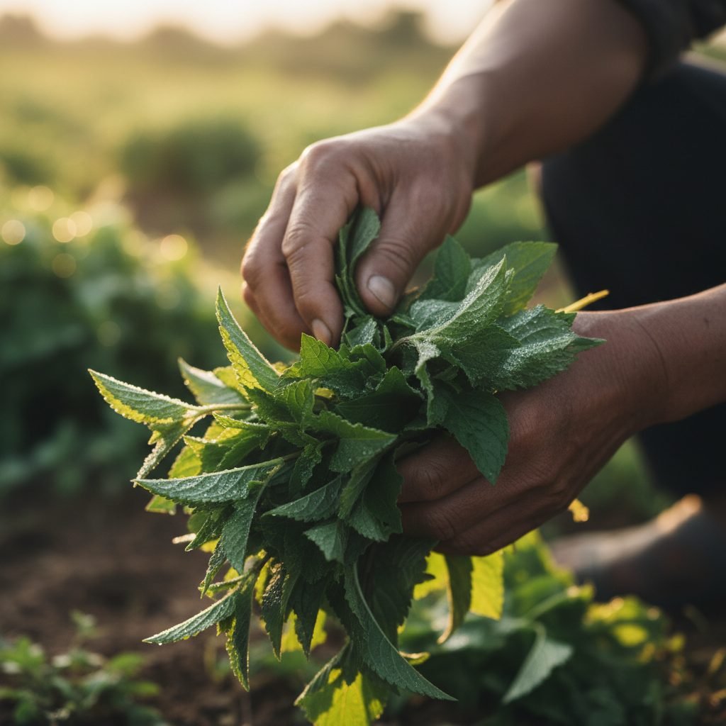 Tất cả nguyên liệu được thu hoạch có trách nhiệm từ các vùng trồng hữu cơ được chứng nhận. Chúng tôi làm việc trực tiếp với nông dân để đảm bảo sinh kế bền vững.